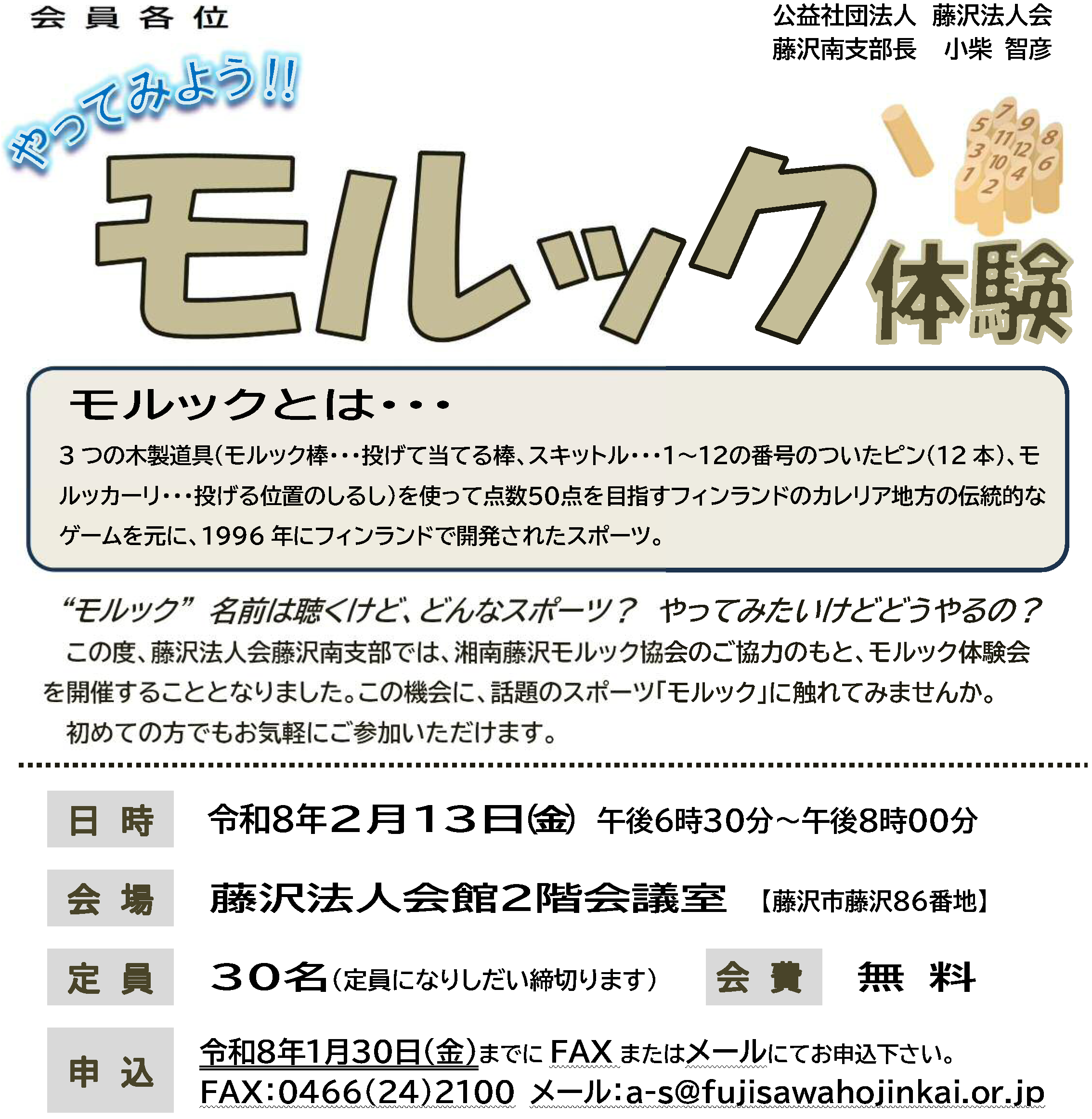 (R8年2月13日開催) 藤沢南支部 モルック体験のご案内(支部限定)