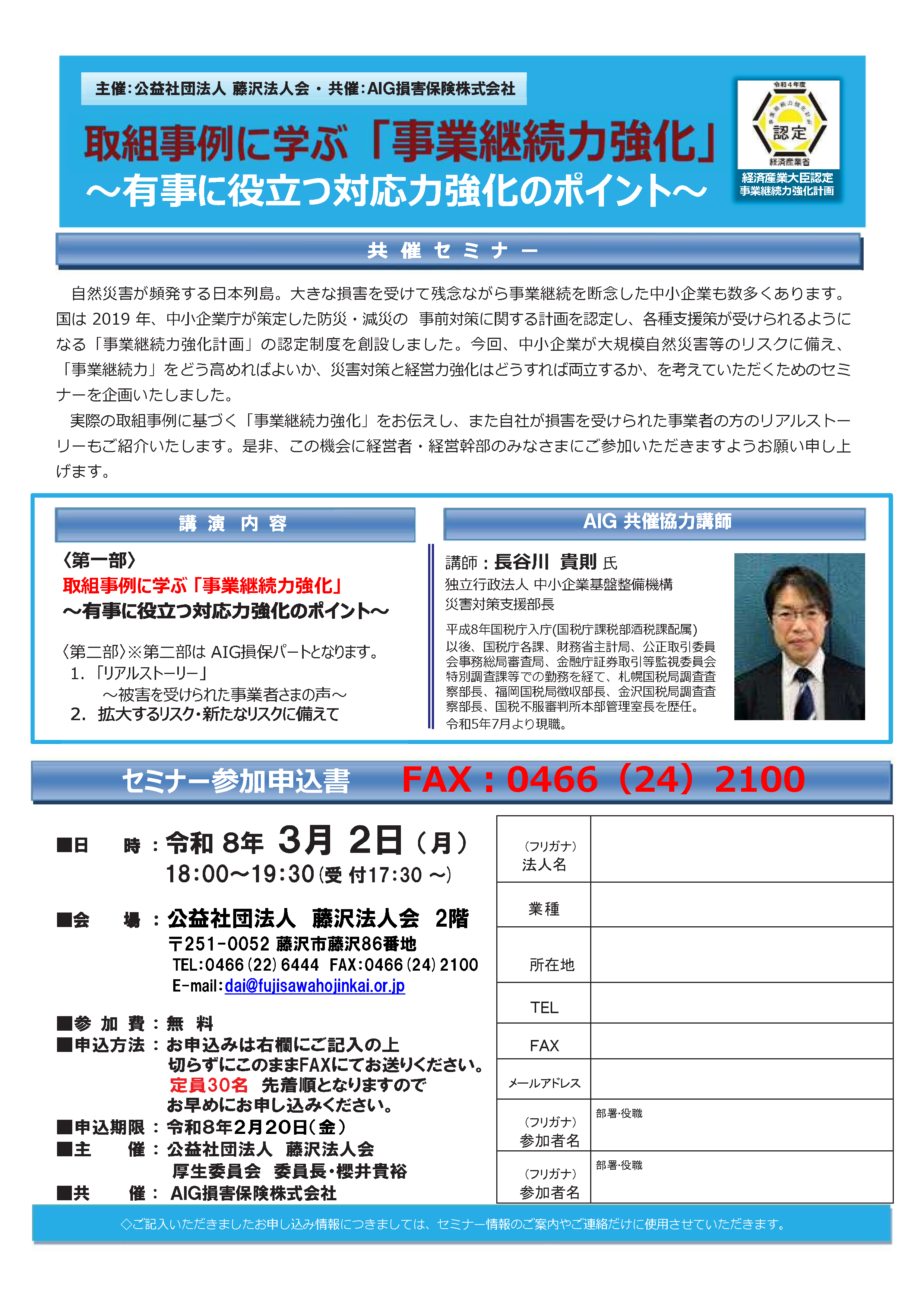 ■会 場 : 公益社団法人 藤沢法人会 2階